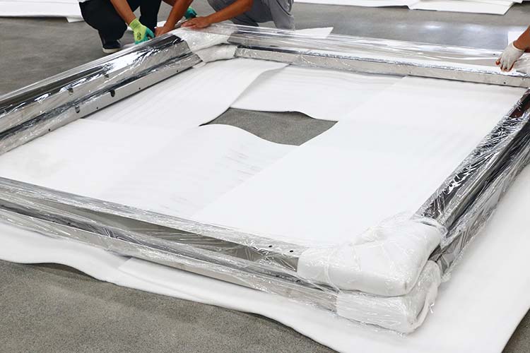 - En CKD, aunque el marco de la puerta es un producto relativamente sólido, muchos fabricantes tienden a ignorar su embalaje. Por ejemplo, no utilizan embalajes flexibles externos y no tienen dispositivos de fijación, lo que provoca que el marco de la puerta se aplaste, deforme o raye con otros objetos pesados durante el transporte. Nosotros nos adherimos a estrictos estándares de embalaje: utilizamos film de embalaje impermeable, utilizamos espuma de embalaje en las esquinas, utilizamos marcos de madera fumigados para la fijación, etc.