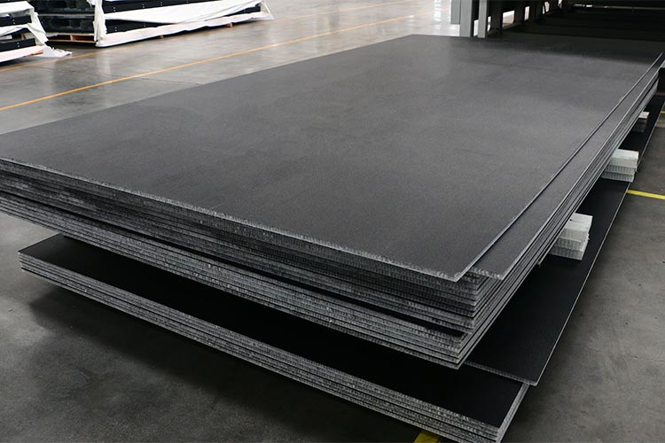 The thermoplastic honeycomb panel is a composite product made of PP (polypropylene) honeycomb core and continuous fiberglass reinforced thermoplastic (CFRT) through thermal fusion. The surface of CFRT has a dense non-slip texture, and anti-transparent carbon black particles are added inside to effectively block ultraviolet radiation.