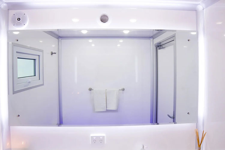 FRP sandwich panels are strong, durable, lightweight and moisture-resistant, making them an excellent choice for building mobile restroom trailers and ideal for mobile sanitary environments. They are moisture and mildew-resistant, easy to clean and maintain, impact-resistant and lightweight, and are often used for interior walls and ceilings to provide a smooth, hygienic surface. Different materials can be selected as the core material of FRP composite panels, such as foam core for thermal insulation and honeycomb core for lightweight.