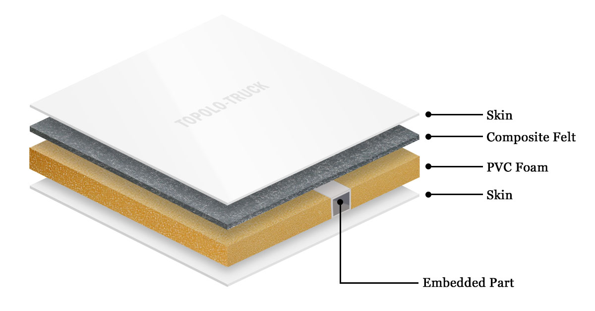 A typical skin-core-skin sandwich structure is simple in design, easy to process, and suitable for most cargo boxes or camper vehicle bodies.