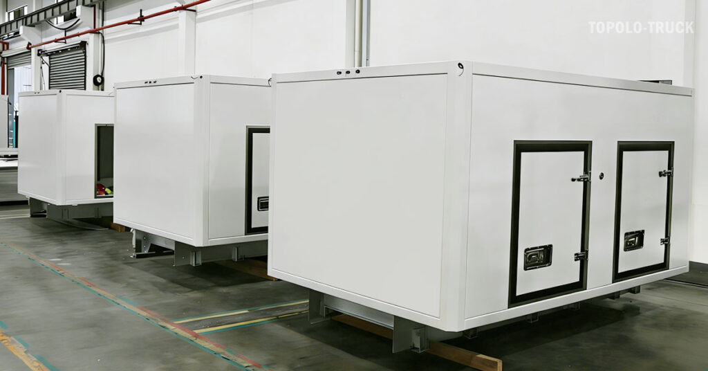 As one of the most innovative refrigerated box manufacturers in China, TOPOLO-TRUCK always prioritizes the needs of its customers. We are committed to providing the most advanced refrigerated box construction technology to meet the logistics market’s demand for efficient, safe, and environmentally friendly transportation.