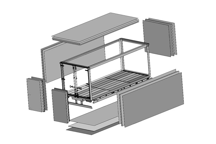 An SKD box body involves pre-assembling the main structural parts (such as the frame, panels, etc.) while shipping separate smaller components (like doors, windows, and accessories). Upon receiving the parts, the customer only needs to assemble some of the details. This option is ideal for customers with some assembly capabilities who need to reduce on-site assembly work. SKD box bodies offer lower transportation costs and a faster delivery cycle.